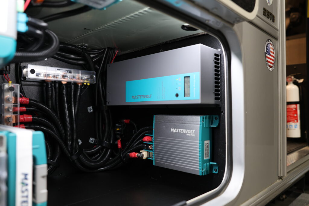 Likewise, the Coachmen Encore 325SS features a dual 460Ah Mastervolt battery setup, paired with a 3000W CombiMaster inverter/charger, a 60A MPPT solar charge controller, and a 50A DC/DC charger. This configuration ensures plenty of power to run all onboard systems with ease, dramatically improving energy independence and daily comfort.